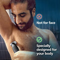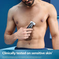 Uniquely designed to power through hair, without compromise on skin comfort. Use the skin friendly shaver with countour following 2D technology or trim by clicking on the 3mm length comb